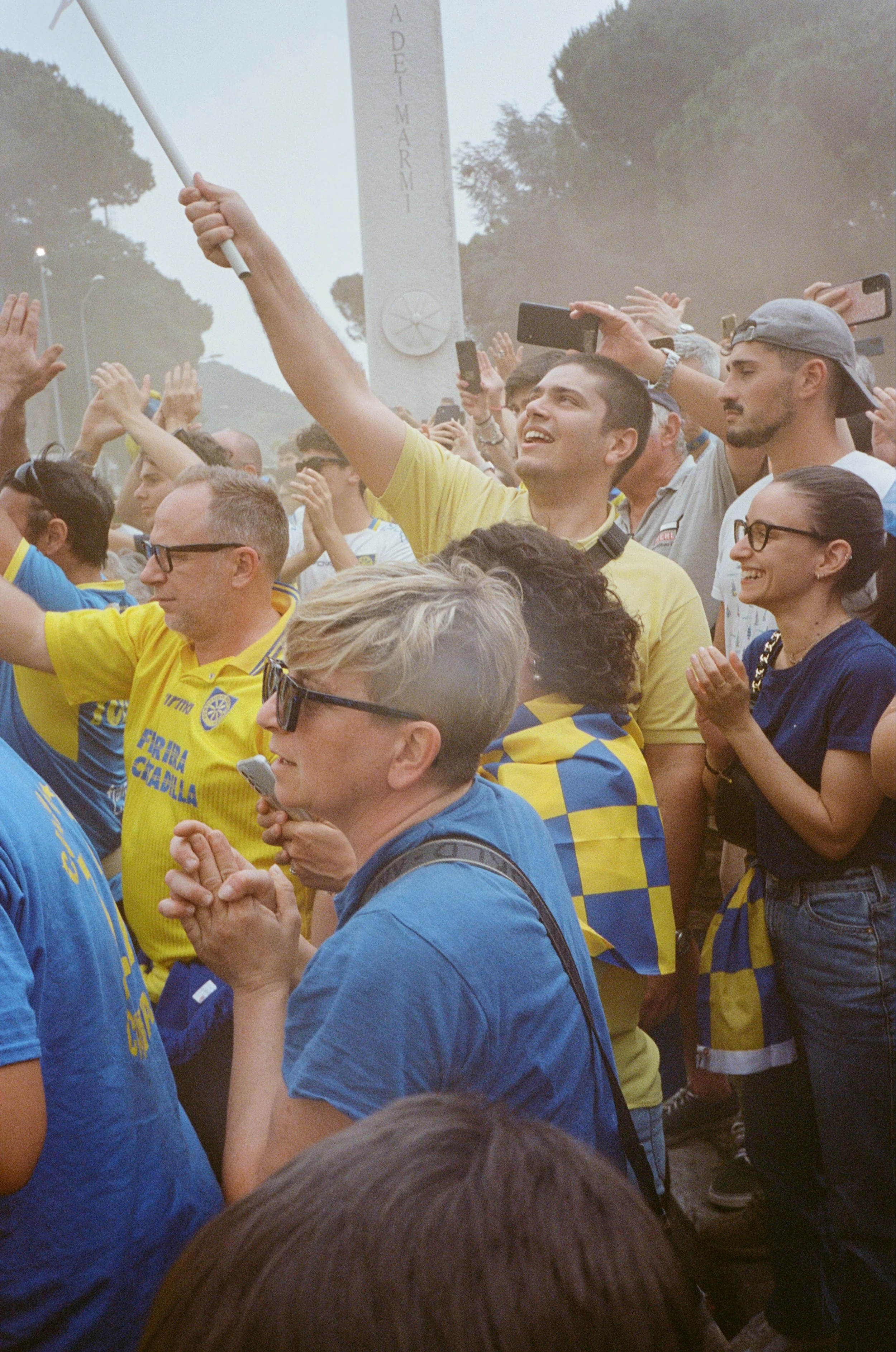 Two and a half hours prior kickoff. I’m outside the Stadio Dei Marmi together with several hundreds Carrarese tifosi. Smoke bombs and singing breaks out, and through the haze a bus arrives with what only can be the Carrarese players. I have just been denied photo accreditation the Serie C playoff final second leg, and the game is sold out.